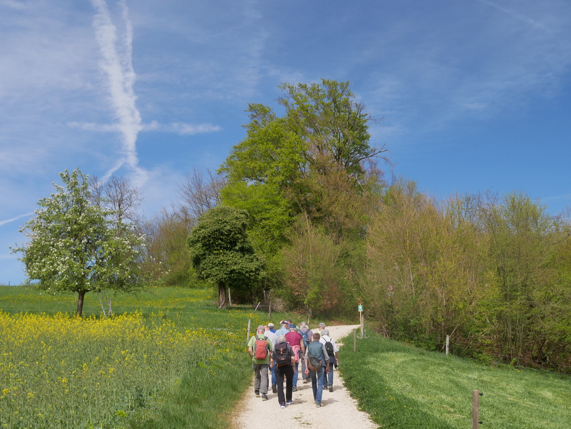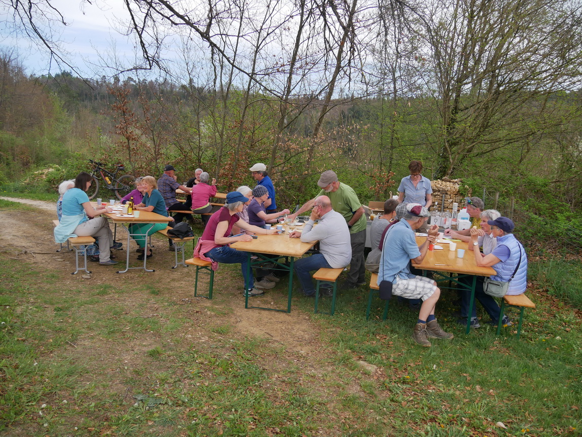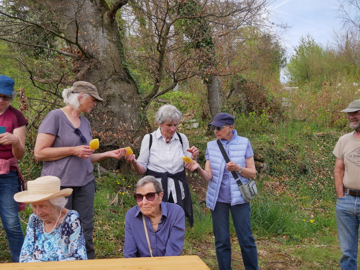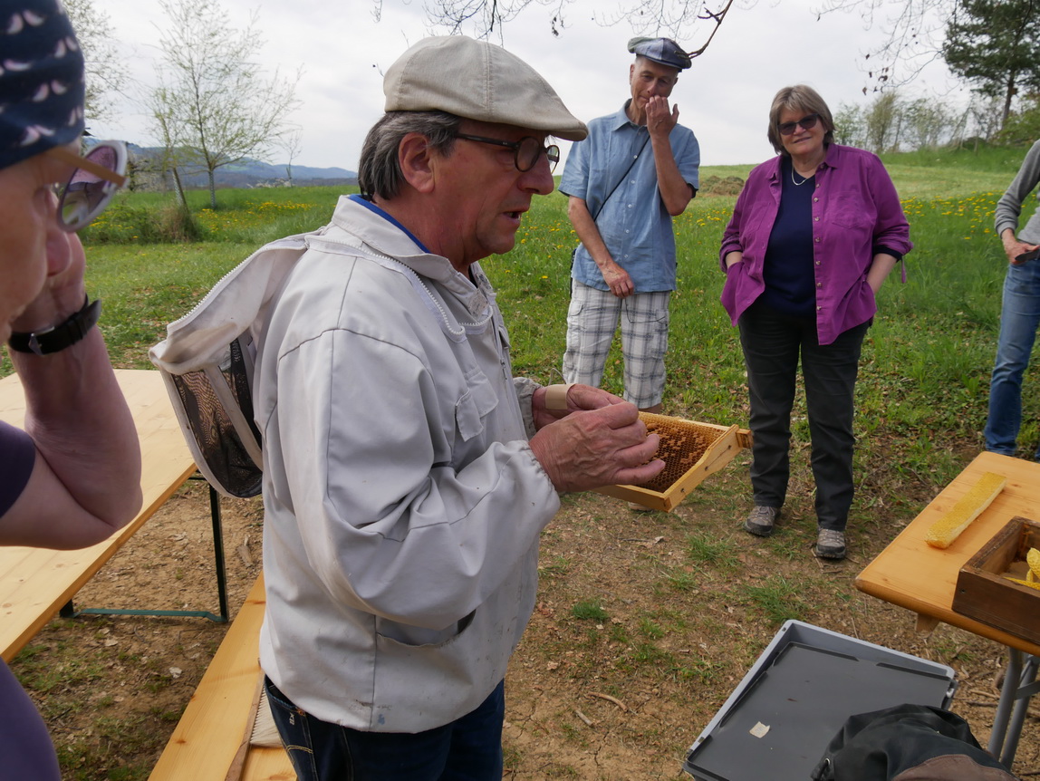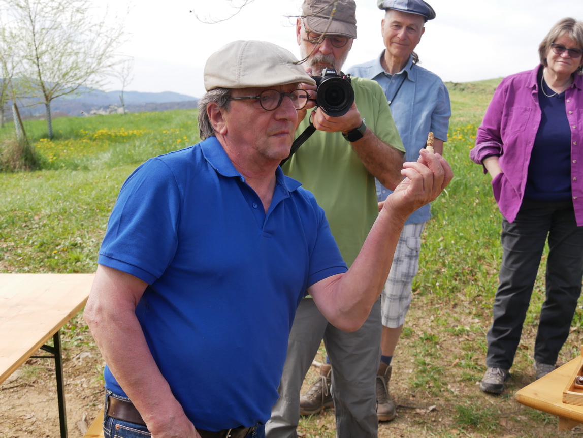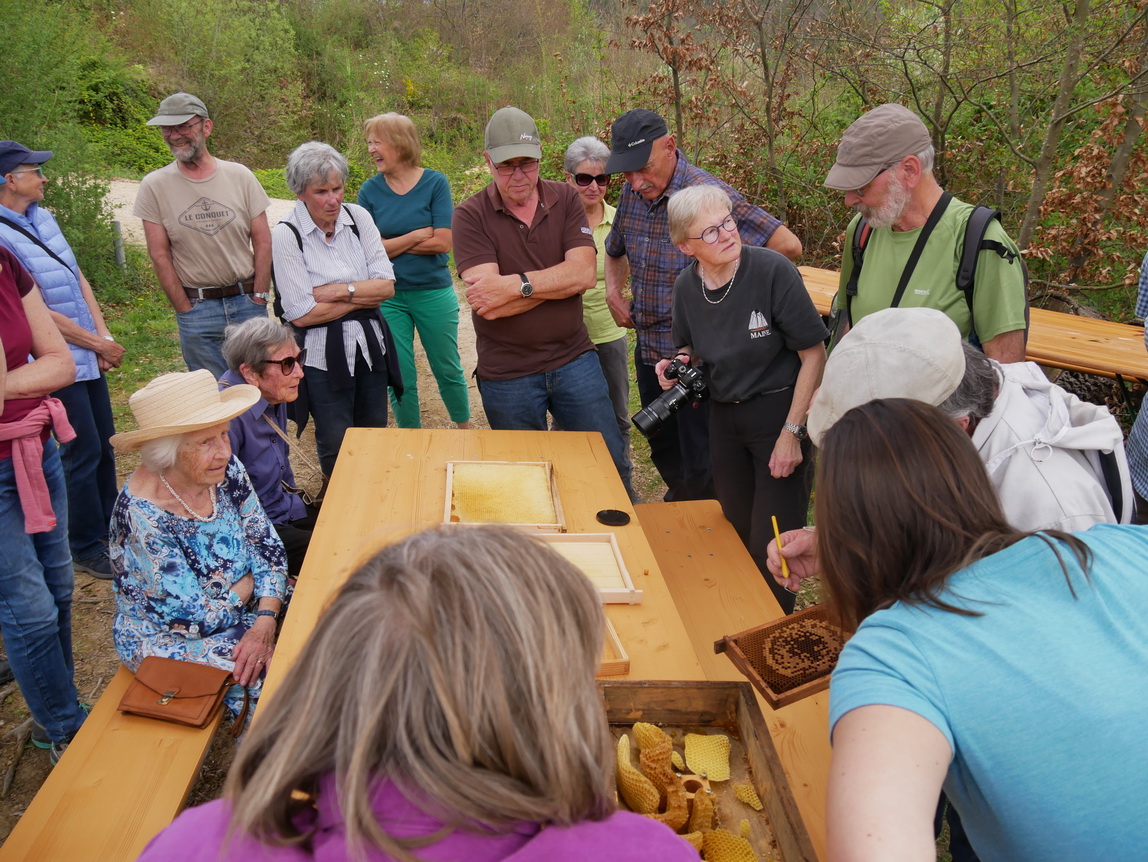 Bei schönstem Sonnenschein trafen sich ca. 25 Interessierte am Samstagmittag mit Peter Stadler auf dem Parkplatz Höchi. Erst einmal ging es zu Fuss zum nahegelegenen Steinbruch. Dort stehen ca. 30 der Bienenkästen, die Peter betreut. Spannend und anschaulich gestaltete er einen Vortrag zum Thema "Bienenkönigin". Die Teilnehmer*innen konnten u. A. Waben von Drohnen bestaunen, eine Königin aus nächster Nähe anschauen und sogar ein paar Bienen beim Schlüpfen zusehen. Nach vielen beantworteten Fragen und viel neu erworbenen Wissen, gab es dann einen wohlverdienten Apéro mit Zopf, Butter und Honig aus Peters eigener Imkerei. Insgesamt ein sehr gelungener und schöner Nachmittag.