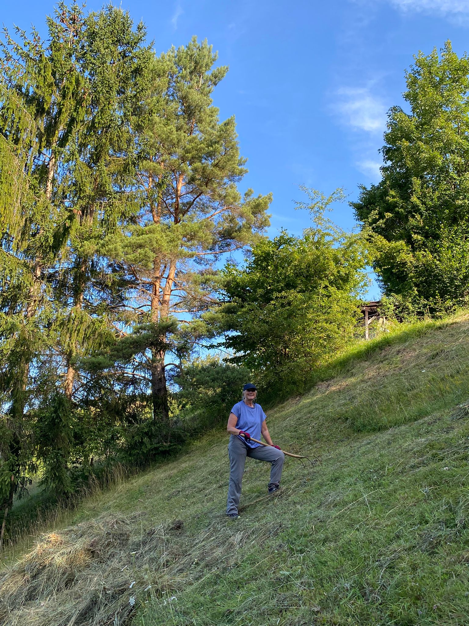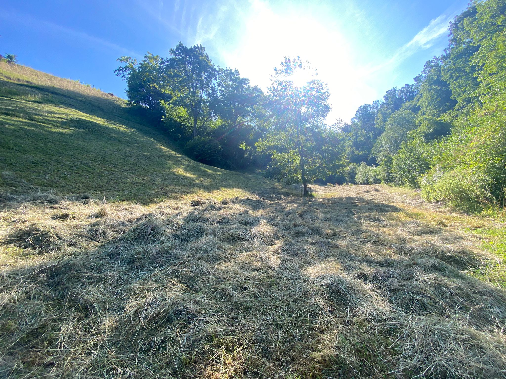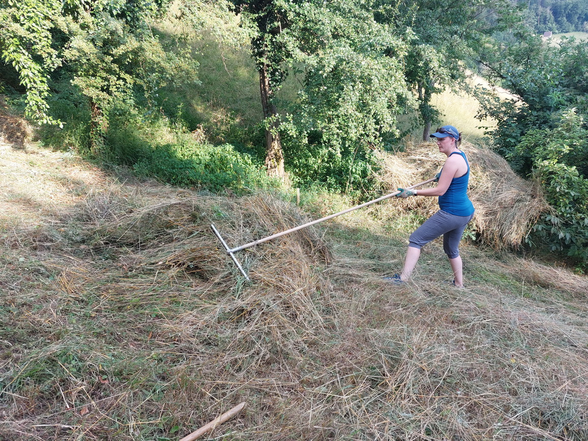 In der Buechen und der Bodenrüti mussten Ackerkratzdisteln und Berufskraut entfernt werden. Kurz darauf konnte dann im Looch und der Bodenrüti gemäht werden. Bei großer Hitze leisteten Manuel und Markus die Vorarbeit- vielen lieben Dank! - sodass die Helfer*innen dann in den Abendstunden, in denen es zumindest etwas kühler war, das Schnittgut zusammennehmen und auf Haufen verteilen konnten.